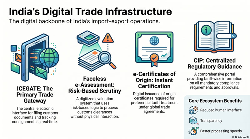 India’s trade facilitation framework is supported by a suite of interconnected digital platforms:
