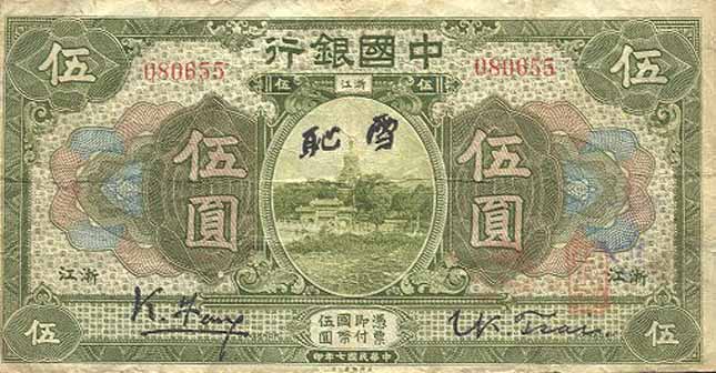 The Ta Ching Government Bank became the only authorized note issuing authority in China until its name was changed to the Bank of China in 1912. The Bank of China today therefore has its roots in Imperial China. The bank had its operations at 3-5, Hankou Road, Shanghai, before being changed to the Bank of China. The building is still there.