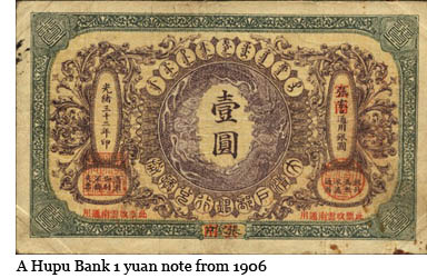 The Hupu Bank was organized by the Imperial Ministry of Revenues in 1904 during the Qing Dynasty. It is the oldest government owned and operated bank in China and opened its first office in Beijing on September 27, 1905 (August 29, 31st year of Guangxu – Qing Dynasty). In 1907, the Hupu Bank established a Jinan branch. In 1908 its name was changed to “Great Qing Bank” (The Da Ching Government Bank) The Imperial Court of China effectively ended in 1911 when Pu Yi, the young Emperor, abdicated in favor of the new Republic of China envisaged by Sun Yat-Sen. The Republic of China was promulgated on January 1, 1912, with the seat of government being based in Nanjing.