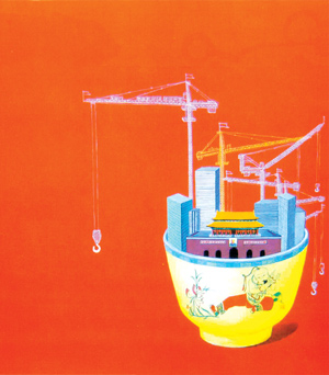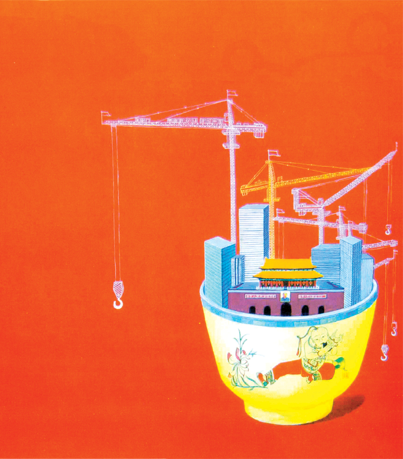 This was the first of the contemporary art covers we ran, and I chose it as it really represented a lot about China at the time. The image of the modern constructions rising out of a traditional tea cup seemed to me a great blend of the old and the new that China had become. The colors were bright, optimistic and, for the artist, represented an “East meets West” theme as he uses Western oils rather than the more traditional Chinese implements. This particular piece also demonstrates the artist’s hope that ‘new’ China will not completely demolish the traditional. “Old” China can also be seen as a metaphor against uncalled for construction and re-development. Zhang Tinqun is a graduate of Sichuan Academy of Fine Arts; his pieces now sell for tens of thousands of dollars.