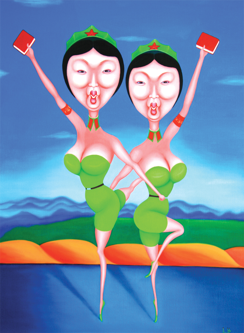 Born in Shandong, Zhao Yi is a self taught artist who previously worked as a photographer. She set up her own studio in 2004 in Beijing. In her 2008 series of oil paintings, she turned to the Cultural Revolution era Chinese ballet “The Red Detachment Of Women” for inspiration and updated the Red Guards into bright voluptuous divas, dancing to a new revolution of China’s development with strength and determination. Her work is well known internationally and has become highly recognizable and collectible.