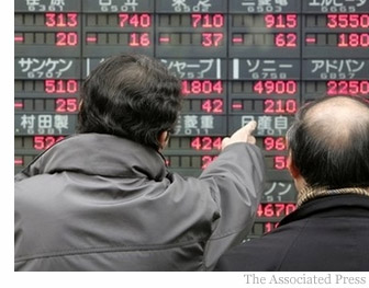 SHANGHAI, Jan. 28 – Asian stocks tumbled Monday as traders took their cues from a faltering U.S. economy and a Wall Street that lost ground on Friday following a two-day rally.