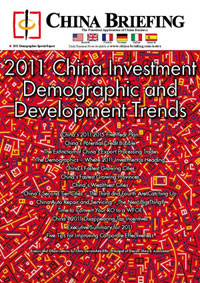 Dec. 30 – China Briefing has just released a complimentary, 41-page report on the demographics and trends in China likely to affect foreign investors in 2011. As we move into the second decade of the new century, investors in China face a series of challenges. China itself is changing, with certain industries and their associated investments being forced to find new pastures as China’s increased labor costs and overheads start to kick in.