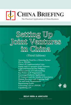 “Setting Up Joint Ventures in China (Third Edition)” is available on the Asia Briefing Bookstore priced at US$40.