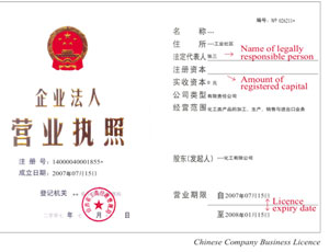 The above issues are all intangibles that may not necessarily be familiar to the new to China investor. Nonetheless, they have been gleaned from close to twenty years experience in China, and should not be taken lightly. There are other areas in which due diligence can be undertaken, and that is to compare the business license of the Chinese company to the information you’ve been told about them. Such data is useful as the license determines the legal limited liability of the company, in addition to confirming other useful details such as registered legal person, registered address and their permitted scope of activity. In China, registered capital is also the amount of legal limited liability.