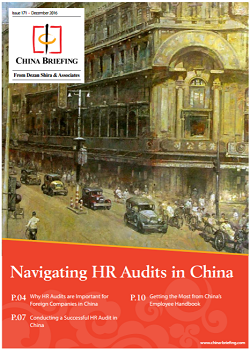 In this issue of China Briefing magazine, we provide a guide for conducting HR audits in China. We analyze why the HR audit is especially important for foreign companies operating in the country, and then detail the different HR audit models and procedures that are available to firms. Lastly, we explain how the employee handbook can serve as a year-round safeguard against labor disputes in the Middle Kingdom.