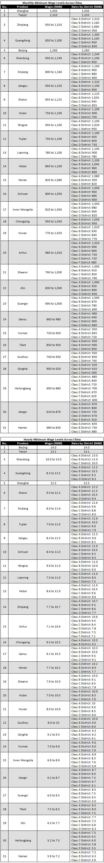 Sources say that Hainan and Tibet are in the process of revising their minimum wage levels, as well.