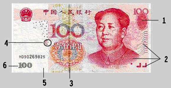 7) The quality of the paper used to print RMB100 bills is more flexible, something akin to paper fabric. In addition, the watermark of Mao’s profile should be clear when held up against the light.