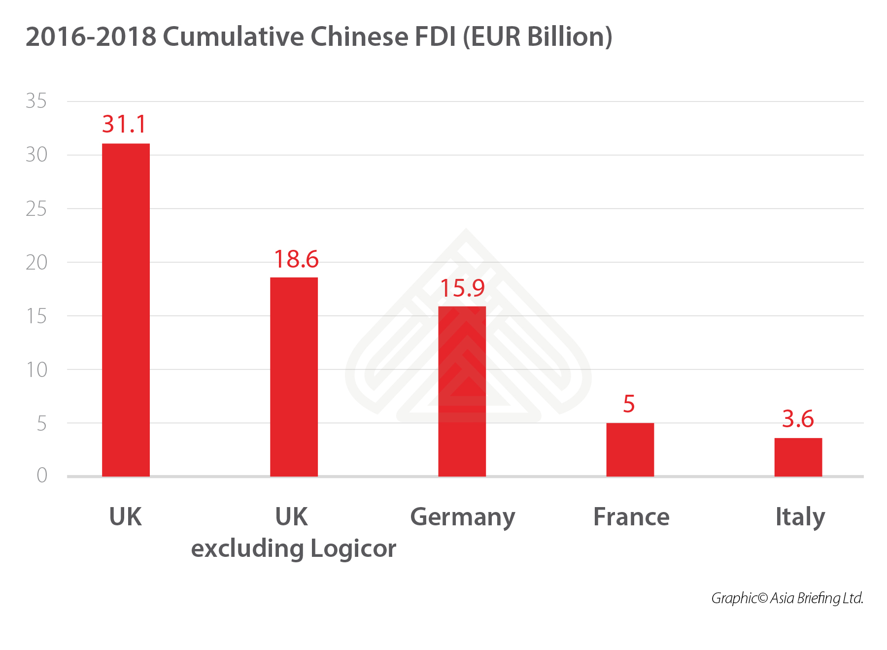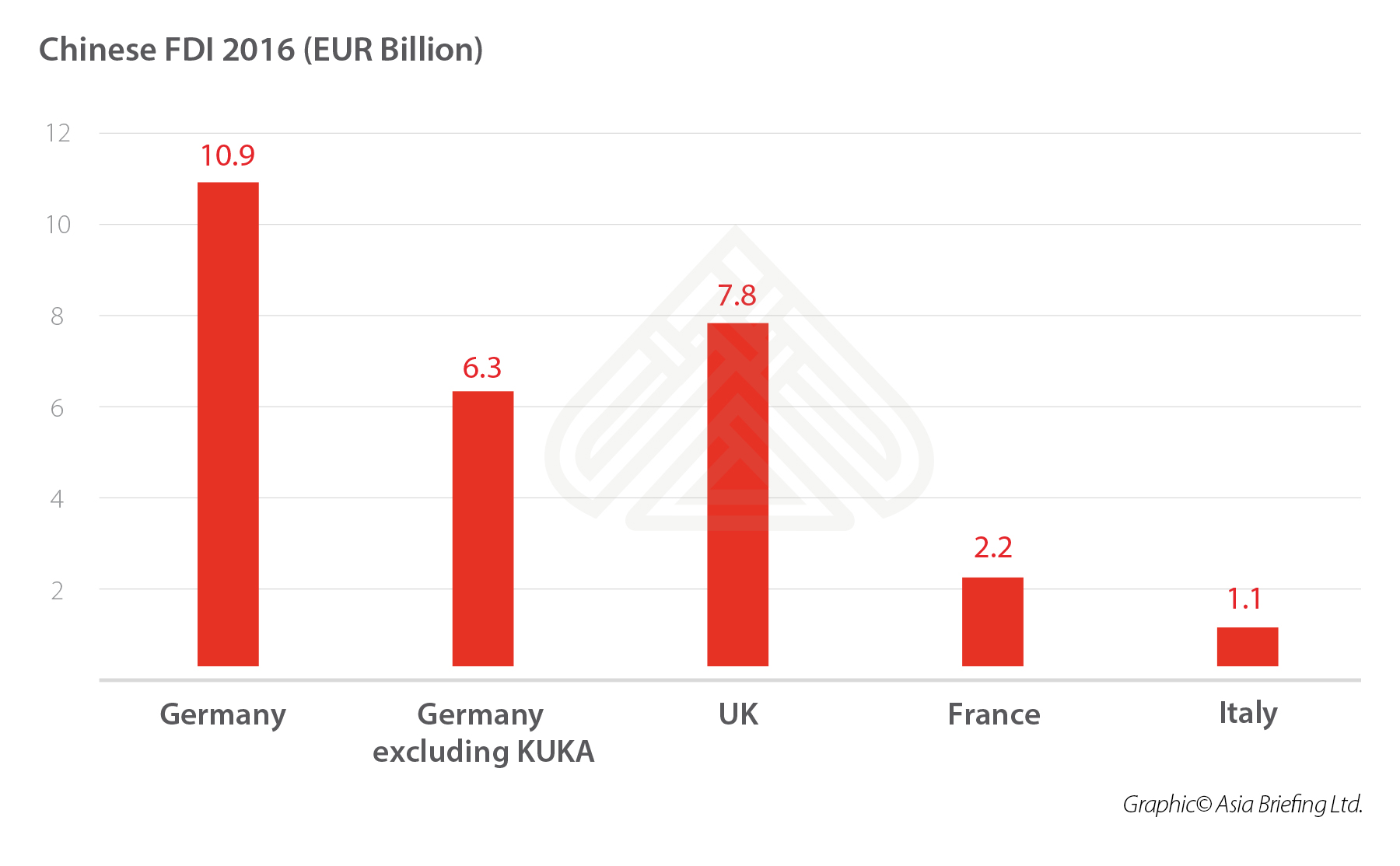 In 2016, Chinese FDI into the UK was far ahead of France and Italy.