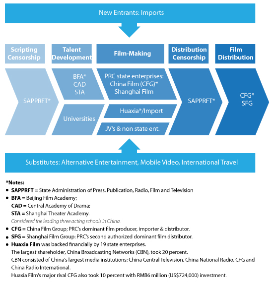 So you would like to invest in China’s film industry? Does the competitive landscape offer opportunities to the strategic investor? Here’s a view of the China film value chain: