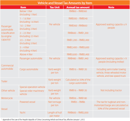 In China, owners or administrators of certain types of vehicles and vessels are subject to an annual tax in accordance with the 2012 Vehicle and Vessel Tax (VVT) Law. Announcement 42 is released as a supplementary guidance to clarify certain issues that were unclear in the 2012 VVT Law.
