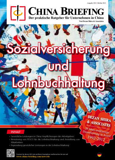 In der China Briefing September 2012 Ausgabe stellen wir Themen zur Sozialversicherung in China vor, die Implementierung in den verschiedenen Regionen sowie die Integretion der von Ausländern in das Sozialversicherungssystem. Dabei stellen wir beispielhaft Anforderungen an Sozialbeträgen in den Dalian, Shenzhen, Suzhou und Tianjin u. a. vor.