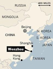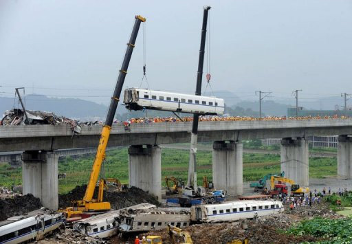 Jul. 25 – A rail accident has left at least 43 dead and more than 200 injured after two high-speed trains collided at approximately 8:27 p.m. on Saturday near the eastern Chinese city of Wenzhou in Zhejiang Province. The accident has intensified concern and criticism of the country’s powerful Ministry of Railways, which has come under fire this year after charges of corruption linked to shoddy construction and a string of issues relating to the recently opened Beijing-Shanghai high-speed rail line.