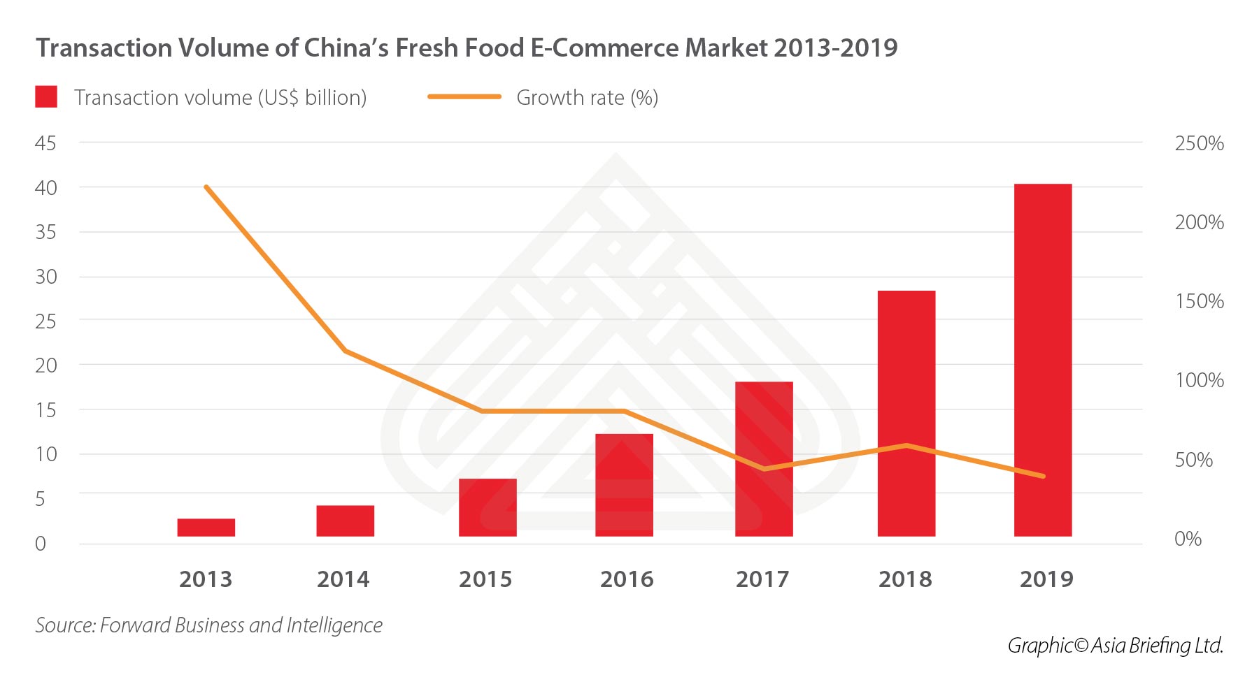 Prima di gennaio il volume d’affari dell’e-commerce cinese di cibi freschi era cresciuto costantemente.