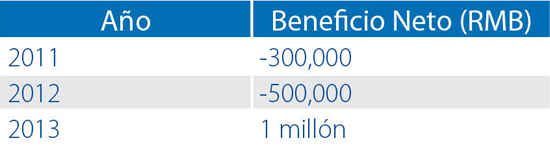 WFOE fue fundada en 2011, sus beneficios netos en 2011, 2012 y 2013 se muestran en el siguiente recuadro:
