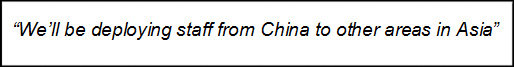 I changed my business focus a few years ago, when we were just a China business. The firm was only a China-based firm, and our publishing house only produced China material. Now we’re in India, Vietnam and Russia. It’s taken a few years to get India where we want it to be, but that investment is now self-sustaining and it gives me cash flow back from the main China operations to fund investment elsewhere. As I mentioned, we’re opening up in Singapore, and we’ll probably do something in Mongolia this year. The rest of Asia is what I term “one city countries” and we’ll be rolling out offices in Thailand, Malaysia, and Indonesia, as well as giving serious consideration to countries like Bangladesh, Cambodia, the Philippines and elsewhere. It’s not just a China play anymore, it’s an Asian one, and we’ve already done the hard work in China and India. We will look at other China investments, probably in the central regions and in the west, but the real growth push will be Asia. In fact we’ll be redeploying staff from China to other areas in Asia. China is a solid platform for us, but we are now in a position to use it as a springboard to other markets. And we’re well positioned to do so. So we’ve diversified out of China, and that’s a more healthy position to be in.