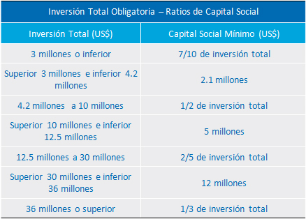 Después de que el capital social haya sido aportado, esta cantidad no podrá transferirse de nuevo libremente. Si una empresa desea ampliar su ámbito de negocio más adelante, puede ser un requisito para aumentar el capital social. Además del capital social, también debe especificarse una cifra total de inversión en los estatutos de la empresa. La cuota total de la inversión es la cantidad total de los fondos previstos para contribuir al proyecto durante su vida útil. La diferencia entre el capital social y la inversión total representa la deuda de la inversión y puede estar compuesta por préstamos del inversor o bancos extranjeros. La siguiente tabla muestra las cantidades de capital social mínimo correspondiente a las cantidades totales de inversión pertinentes.