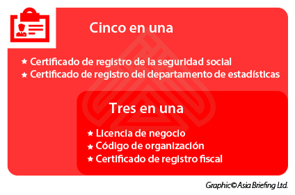 Después de recibir el certificado de aprobación del MOFCOM, el registro y la solicitud de la licencia de negocio se puede hacer en la oficina local de la AIC en un plazo de 30 días desde la recepción de la solicitud. Al igual que el proceso de registro, la solicitud de la licencia de negocio se ha simplificado hace poco con la introducción de la licencia de negocio cinco en uno, que ha sustituido la previa de tres en uno. El número de crédito nacional estandarizado cubre simultáneamente: