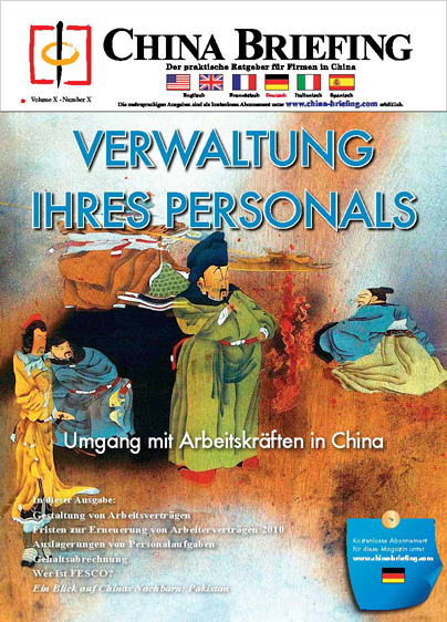 Einen ausführlichen Beitrag zu dem Thema “Verwaltung Ihres Personals – Umgang mit Arbeitskräften in China” finden Sie in China Briefing, 10. Ausgabe 2009.