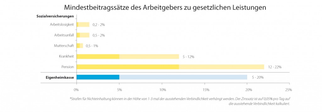 In der monatlichen Lohn- und Gehaltsabrechnung sind Arbeitgeber verpflichtet den Unternehmensbeitrag für alle Arbeitnehmer zu bezahlen, sowie die individuellen Beiträge der Arbeitnehmer von ihren Gehaltsschecks an die Sozialversicherungsanstalt weiterzuleiten.