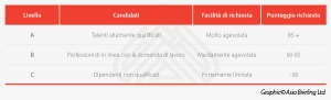 Verranno assegnati punti per ciascuna categoria a seconda della formazione, dell’età, del tempo lavorativo trascorso in Cina e del livello di lingua cinese del candidato. I candidati che faranno richiesta per lavorare in aree in via di sviluppo avranno la possibilità di ricervere un punteggio più alto.