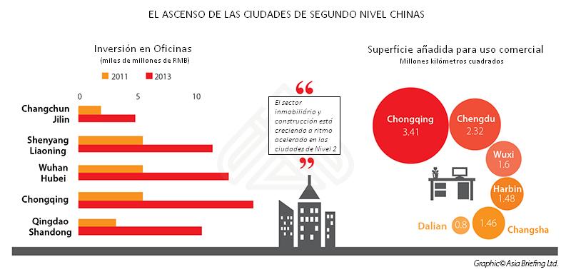 Aunque las ciudades de primer nivel chinas continúan manteniendo su posición dominante en el mercado inmobiliario, ciudades de menor nivel han ganado terreno a un ritmo destacable. Parte de las décadas de proceso de urbanización chino están de hecho, teniendo lugar en ciudades costeras pequeñas y capitales de provincia. Mega- ciudades de las que los extranjeros ni siquiera han oído hablar. Con un crecimiento económico más vigoroso que las ciudades tradicionalmente importantes, estos próximos destinos ofrecen tanto oportunidades laborales como un coste de vida más asequible.