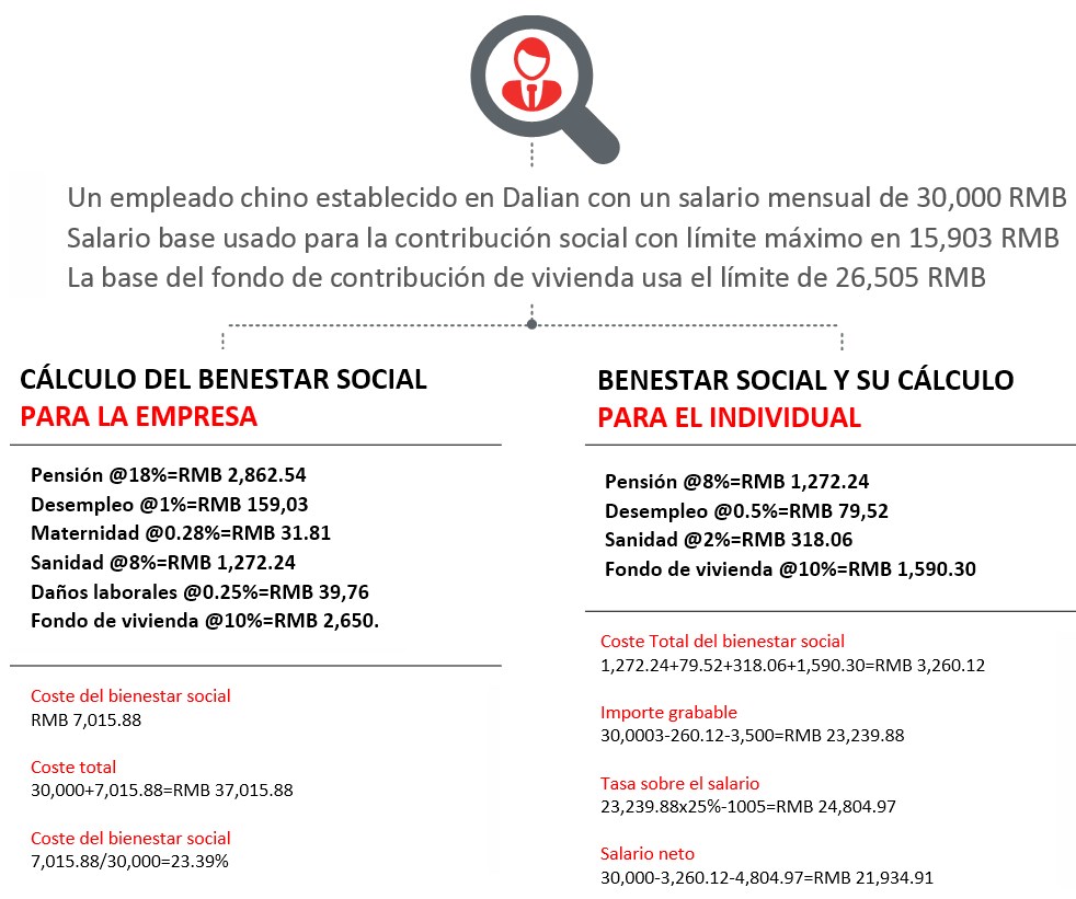 Un buen ejemplo de esta complejidad es el sistema de seguro social y el fondo de viviendas en China. Las contribuciones se deben hacer a nombre de cada empleado, pero la administración de los sistemas se maneja a nivel de ciudad. Los porcentajes de contribución difieren mucho entre ciudades, e incluso entre distritos de una ciudad. Los fondos de viviendas, en particular suponen un reto. El fondo total destinado a la vivienda, de la contribución de los empresarios se considera libre de impuestos cuando el salario de un empleado no supera el 500% del salario medio local en algunas ciudades. En otras, la base para estar exento del impuesto de contribución a la vivienda, está limitado al 300% del salario medio anual a nivel local.