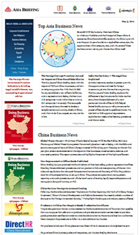 May 5 – As many China Briefing readers will know, the title is produced by our parent company, Asia Briefing Ltd., which also produces titles in other countries throughout Asia. As China’s interaction with Asia increases, and China-based businesses are now beginning to examine the potential of other Asian markets, we now provide a complimentary, weekly email update designed to keep the busy Asia-based executives up to date not just with China – but with the rest of Asia as well.