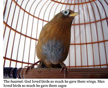 “Chinese culture prefers caged birds,” says one local. “They can be trained to sing better. A newly captured Huamei (Spectacled Thrush) costs RMB300. A one-year-old can fetch as much as US$2,000. If we want to see birds, we can go to the market.”