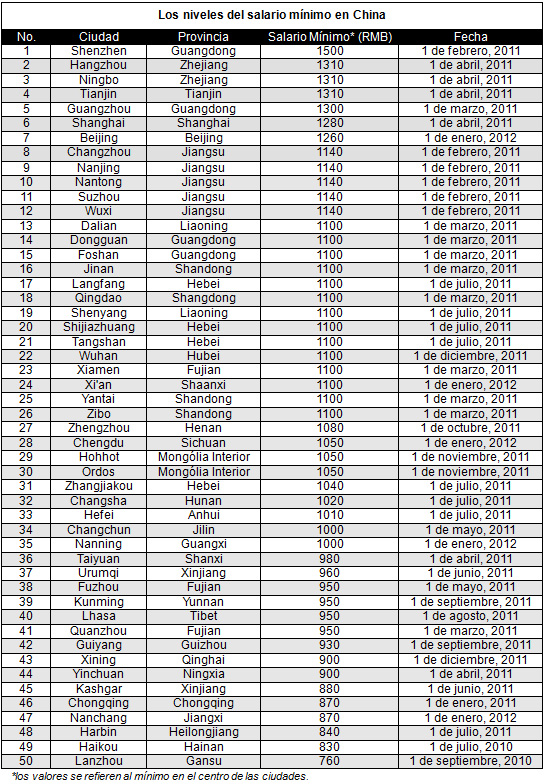 22 de febrero – Mientras que los niveles salariales en China han sido criticados recientemente (Foxconn, un proveedor clave para Apple, aumento en un 25 por ciento los salarios de los empleados, quienes trabajan para sus fábricas en China, a principios de esta semana después de críticas internacionales), los niveles actuales del salario mínimo del país han estado en vigor desde hace décadas y han subido rápidamente en toda China.