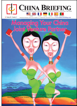In this issue, we examine the complexities of managing a joint venture partner in China, including handling due diligence and risk issues. Specifically, we look at regulatory risks, political risks, legal and financial risks, and operational, environmental and motivational risks. We also discuss how, from a minority equity position, JVs may still be effectively controlled, and identify the role technology transfer agreements can play within this situation. We discuss other managerial issues concerning JVs, and also look at the investment environment in some more of China’s second- and third-tier cities.