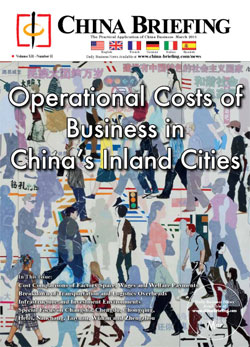 Mar. 1 – The new issue of China Briefing Magazine – out today – is dedicated to analyzing the costs of doing business in China’s inland cities compared to their coastal counterparts.