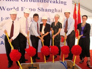 The U.S. pavilion will cost US$61 million for construction, operations and post-expo demolition. “We’ve literally rolled up our sleeves and we’re ready to get to work,” said Commissioner General Villarreal at last Friday’s groundbreaking. Now that the ground at the site has been broken, construction will commence and is planned to wrap up before the Expo begins and guests across the globe arrive.