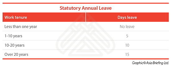 The amount of statutory annual leave is generally based on an employee’s work experience/tenure.