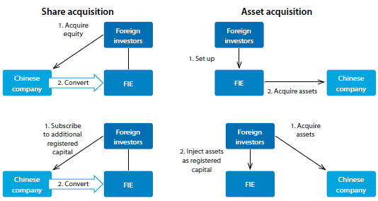 - Acquisition of assets in a Chinese company by a foreign investor and the injection of those assets as registered capital into a FIE.