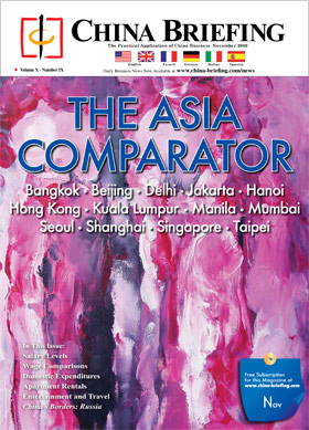 In this issue of China Briefing we expand our horizons and take a look at emerging Asia. Using statistics researched by the global financial services firm UBS, we extrapolated and added additional figures to help analyze the major cities in Asia, including Bangkok, Beijing, Delhi, Hanoi, Hong Kong, Jakarta, Kuala Lumpur, Manila, Mumbai, Seoul, Shanghai, Singapore and Taipei. For China, the numbers clearly demonstrated that the country is becoming more expensive for business, while lower cost centers in India and Southeast Asia are beginning to become more attractive. However, while the costs of operating in China are rising, so is the standard of living, and with it, the tremendous opportunities this increase in salaries will bring to both investors and the emerging consumer class.