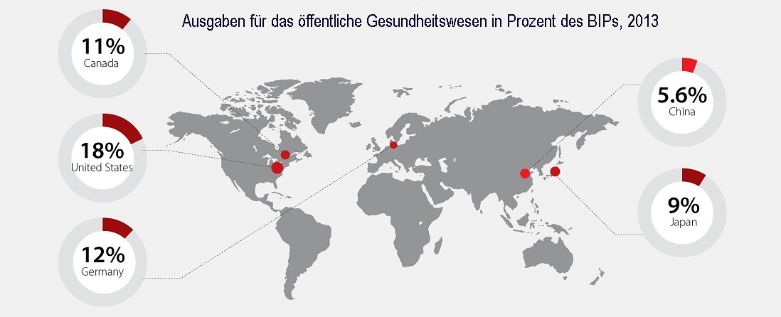 Trotz eines 20-prozentigen Anstiegs der öffentlichen Ausgaben für medizinische Versorgung hat China zur Zeit nur einen Anteil von zwei bis drei Prozent am Weltmarkt für medizintechnische Geräte. Auf internationaler Ebene, sind die Märkte für Pharmazeutika und Medizintechnik etwa gleich groß, während in China der Markt für Medizintechnik nur etwa 14 % vom Market für Pharmazeutika beträgt.