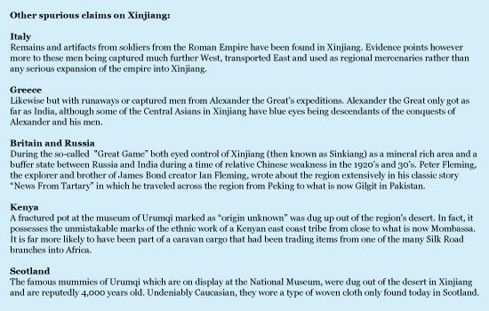 Damolla issued money printed on sack cloth and mulberry bark and issued it as currency to raise money for weapons until the Chinese promptly marched back in and had the ringleaders executed for their pains. A three month-old existence based on a Muslim warlord’s personal ambition is a somewhat flimsy claim to make when demanding an independent state on historic grounds.