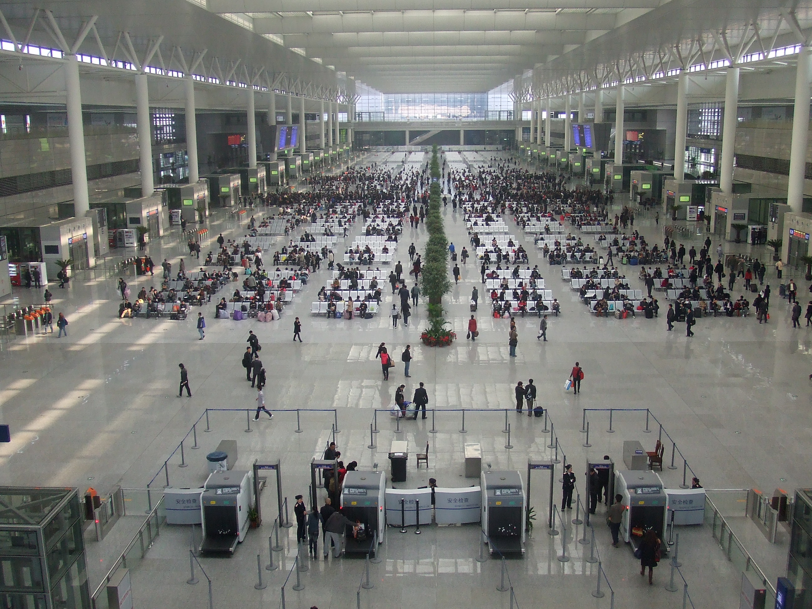 Der im Jahr 2010 gebaute Bahnhof hat beeindruckende Ausmaße. Von 16 Bahnsteigen fahren Schnellzüge innerhalb von 73 Minuten in das 300 km entfernte Nanjing. Ab 2011 fahren Schnellzüge auch von diesem Shanghaier Bahnhof nach Peking ab. Manche Züge halten an Zwischenstationen, an denen sich ein Großteil der chinesischen Wirtschaft befindet sowie wichtige Industrie-Parks, wie zum Beispiel in den Orten Suzhou, Wuxi oder Kunshan. Die Strecken nach Nanjing und Peking haben separate Gleise, verlaufen aber teilweise parallel nebeneinander. Beide Strecken sind für eine Geschwindigkeit bis zu 350 km/h beziehungsweise 380 km/h ausgelegt. Nach kurzem Warten werden die Passagiere für meinen Zug nach Nanjing, der in Kunshan hält zum Boarding aufgerufen. Die Einsteigeprozedur erinnert an einen Flughafen. Erst nach einem Scan meines Tickets wird mir der Zugang zum Bahnsteig gewährt, mit dem Ticket ist automatisch eine Reservierung des Sitzplatzes verbunden.