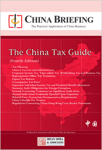 The China Tax Guide (Fourth Edition) is available for immediate PDF download at the Asia Briefing Bookstore; hard copies are also available. For more information, please contact sales@asiabriefingmedia.com.
