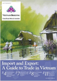 In this issue of Vietnam Briefing Magazine, we provide you with a clear understanding of the current business trends related to trade in Vietnam, as well as explaining how to set up your trading business in the country. We also attempt to give perspective on what will be Vietnam’s place in the Association of Southeast Asian Nations (ASEAN) in 2015, and look at some of the country’s key import and export regulations. Finally, we analyze Vietnam’s important free trade agreements and its World Trade Organization obligations. – See more at: http://www.asiabriefing.com/store/category/vietnam#sthash.b6GCdhnF.dpuf. – See more at: http://www.asiabriefing.com/store/category/china#sthash.tYImG0oP.dpuf. – See more at: http://www.asiabriefing.com/store/category/italian-asia-regional-intelligence#sthash.PD6Q9mAv.dpuf.
