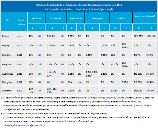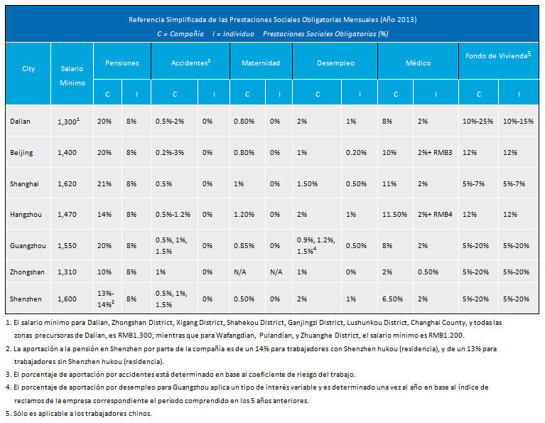 A todas las empresas registradas en China se les exige el pago de estas primas de seguro para, y en nombre de, los trabajadores. Mediante el pago de las primas, los empleadores pueden ver incrementado el coste salarial de cada trabajador en más de un 30 por ciento.
