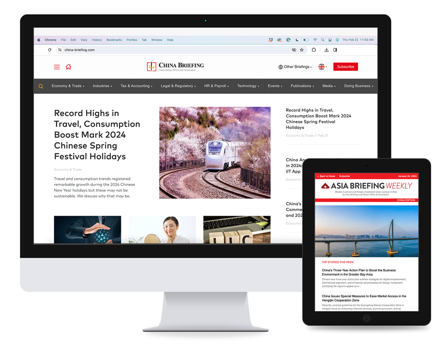China Briefing has developed into a premium source for insight on doing business in China. It publishes business news concerning foreign direct investment into China, including the most important tax, legal and accounting issues. The China Briefing Magazine was first published in 2009, and is contributed to by investment professionals based in China.